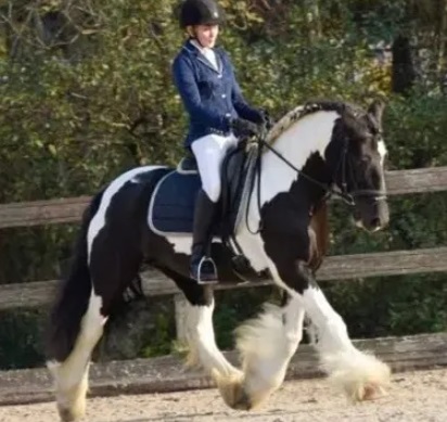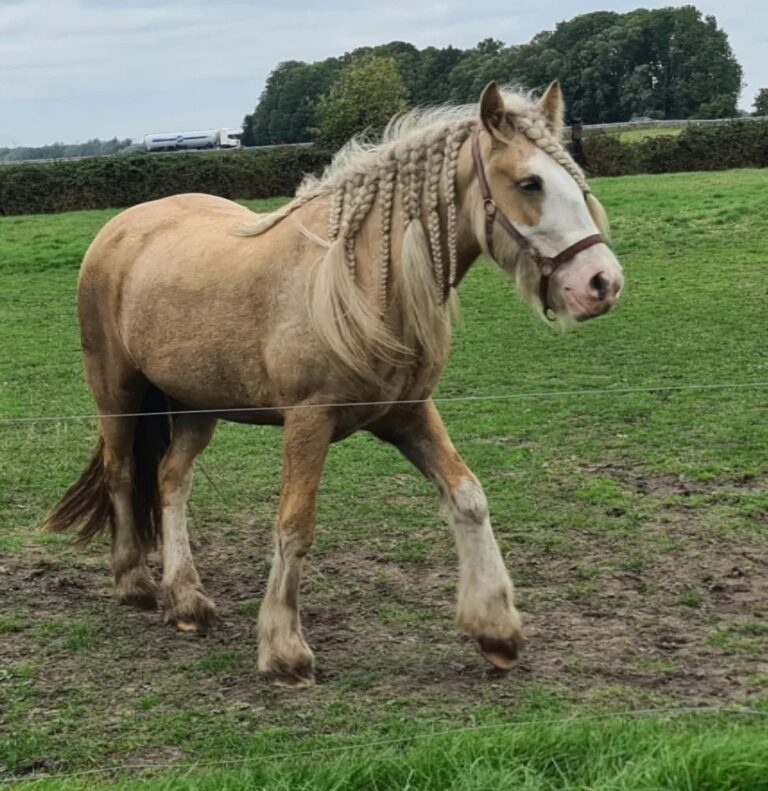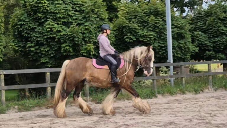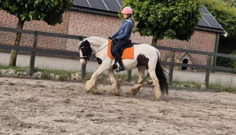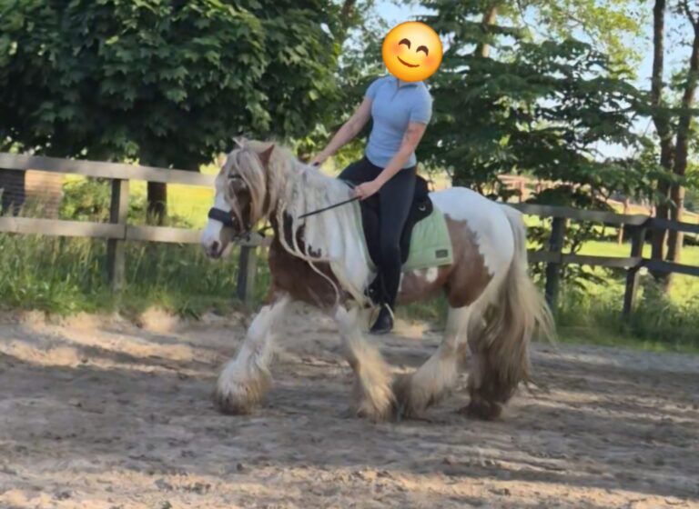 Een grote, gouden merrie met lange benen, elegante lijnen en een krachtige bouw van zowel moeder als vader. Hinaya combineert présence met zachtheid — makkelijk in de omgang, en onder het zadel vlot maar betrouwbaar. Ze is iets minder gevoelig dan haar moeder, waardoor ze comfortabel en responsief aanvoelt zonder scherp te zijn. Haar opvallende kleur en rustige, mensgerichte karakter maken haar tot een veelbelovende merrie voor ruiters die verfijning zoeken zonder de echte Gypsy-ziel te verliezen.