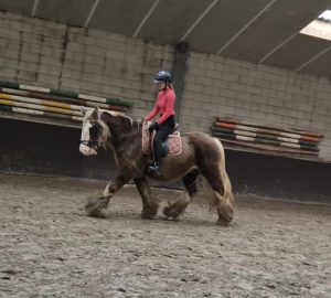Naya is de dochter van Rose. Ze is geboren in 2020 en heeft een stokmaat van 1,60 meter. Omdat ze nog jong is, hanteren we een gewichtsgrens van 70 kilo voor haar. We zijn nog bezig haar zadelmak te maken, en ze doet dit allemaal erg lief en betrouwbaar.