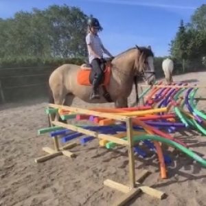 In deze lessen leer je tactieken om je paard met rust en vertrouwen door ‘enge’ situaties te begeleiden. We gebruiken obstakels zoals zeilen, sliertengordijnen, rookmachines of zwembadslurfen om jullie samenwerking en vertrouwen te versterken — altijd met geduld, rust en een duidelijke aanpak.