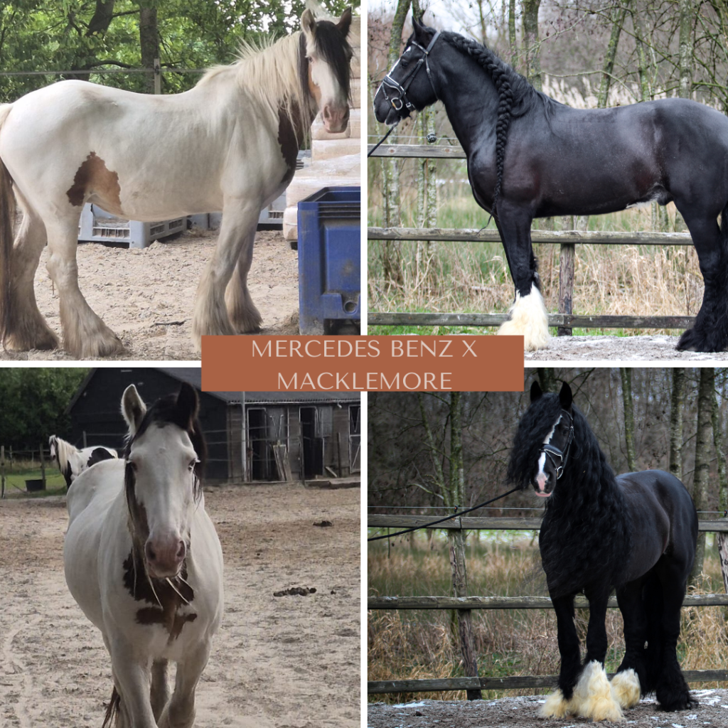 De combinatie van Benzy (1,65 m) en Macklemore (1,68 m) brengt hoogte, harmonie en balans samen in een zeldzame mix. Benzy draagt bij aan breedte, kracht en krachtige, aardse bewegingen; Macklemore voegt verfijning, souplesse en elegantie toe. Samen beloven ze een correct en sportief gebouwd veulen met een sterke bovenlijn, expressieve gangen en een rustig, mensgericht karakter — ideaal voor luxe recreatie, sport of de showring. Deze combinatie biedt meer dan alleen schoonheid: ze levert présence, kracht en potentie.
